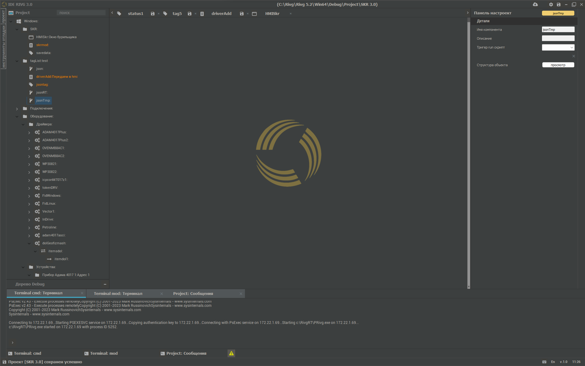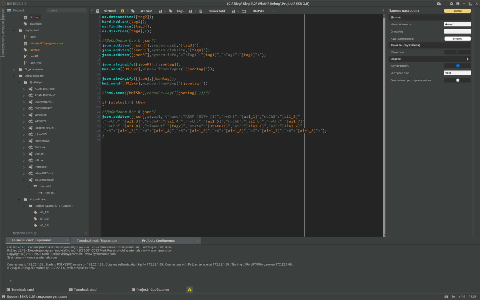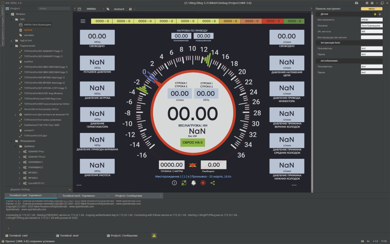 IDE, completely developed in-house (domestic equivalent of SCADA software) Competence at all levels. Programming on domestic controllers and processors.